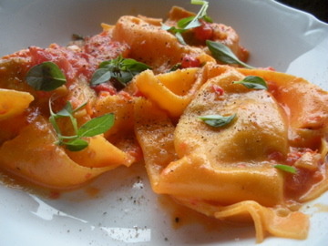 Put a large pot of water to boil. When bubbling vigorously add a packet of fresh stuffed pasta (any will do).