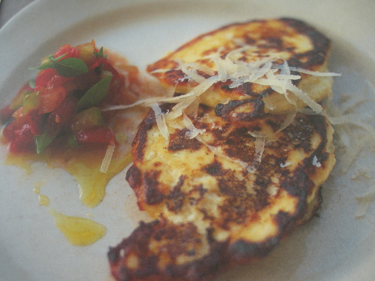Warm a little olive oil in a non-stick frying pan and fry the ricotta cakes in batches of heaping tablespoons and flip over when golden using a spatula. These are very delicate so give yourself some space between the fritters in the pan so it is easier to flip them over.