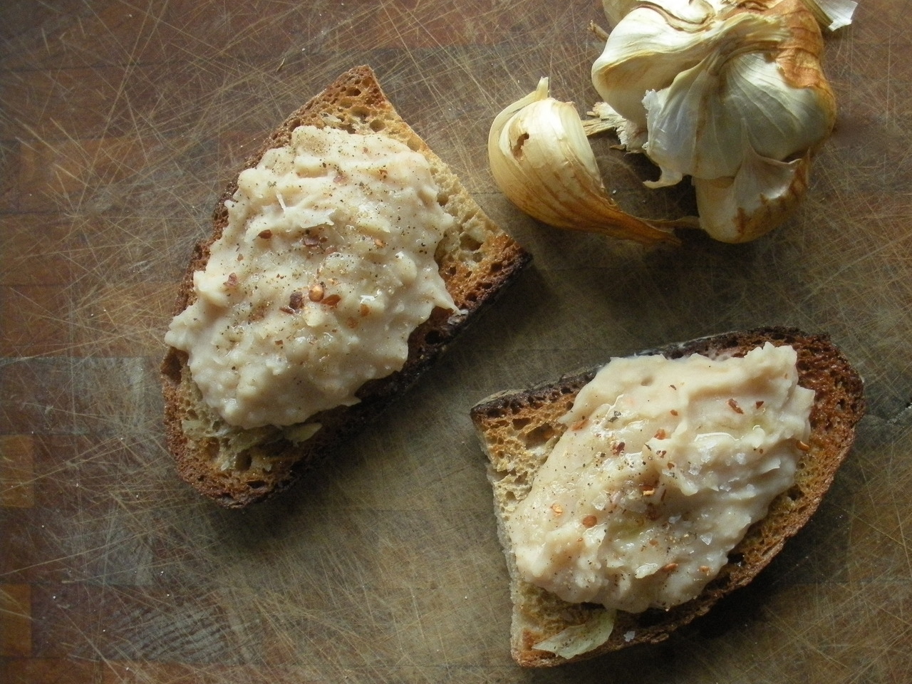 Toast four small slices of sourdough bread, rub with a cut clove of smoked garlic. Spread the puree overtop and sprinkle with some chili flakes. Add a drizzle of olive oil and serve along with a glass of Pugliese Primitivo (aka Zinfandel), such as the organic Fatalone.