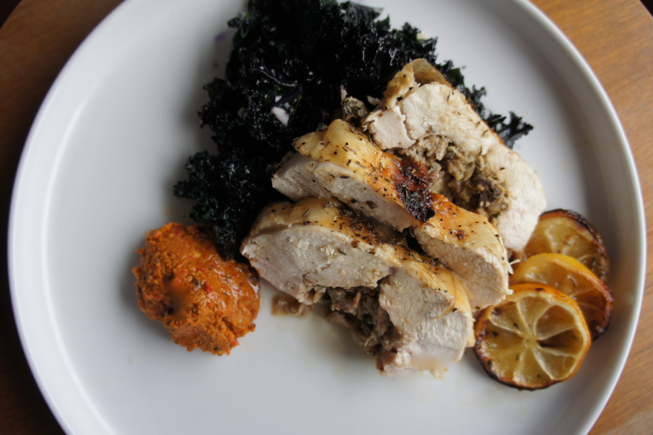Serve with roasted chicken (as in the photo above along with steamed kale and roasted lemons), grilled fish or lamb, or spread on country-style bread with crumbled feta cheese to make a sandwich.