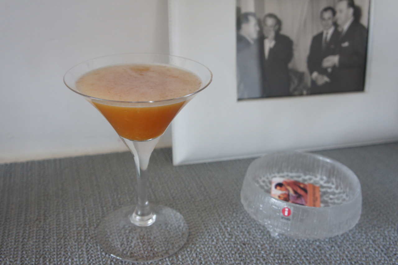 In a cocktail shaker 1/3 filled with ice add 40ml Bourbon (Maker’s Mark), 20ml apricot liqueur (Nannerl), 25ml lemon juice, 25ml passion fruit juice (or orange juice), 1 tbsp apricot jam and a dash of orange bitters. Shake well, till the shaker becomes quite cold and strain into a chilled cocktail glass.
