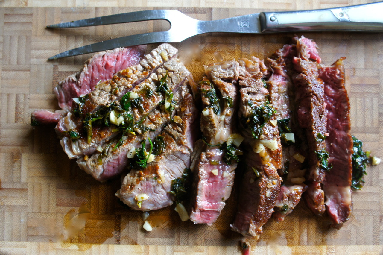 Tagliata (Italian for “sliced”) is a simple Italian dish of grilled steak, seasoned with a variety of toppings (rocket & parmesan, rosemary, etc.) and then sliced up before serving. This version sees one of my favourites Italian combos; garlic, parsley and lemon.