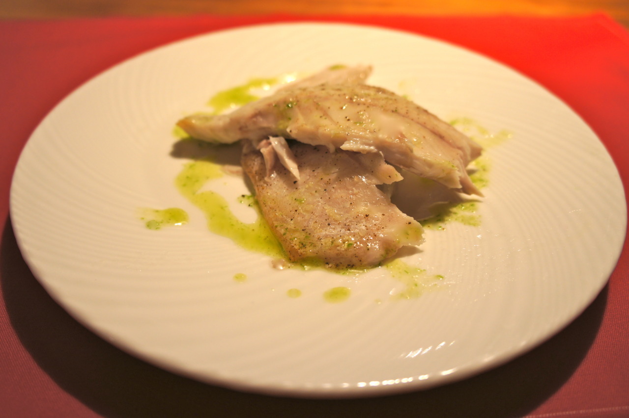 Transfer the sea bass to serving plates and sprinkle with the chive oil. You can warm the oil slightly before serving.