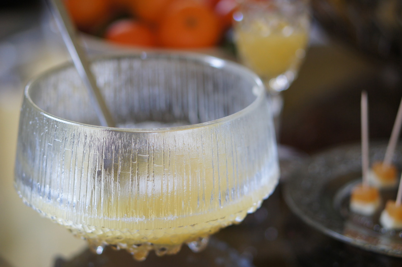 Just before serving add 500ml Prosecco and place the pineapple rings into the bowl.