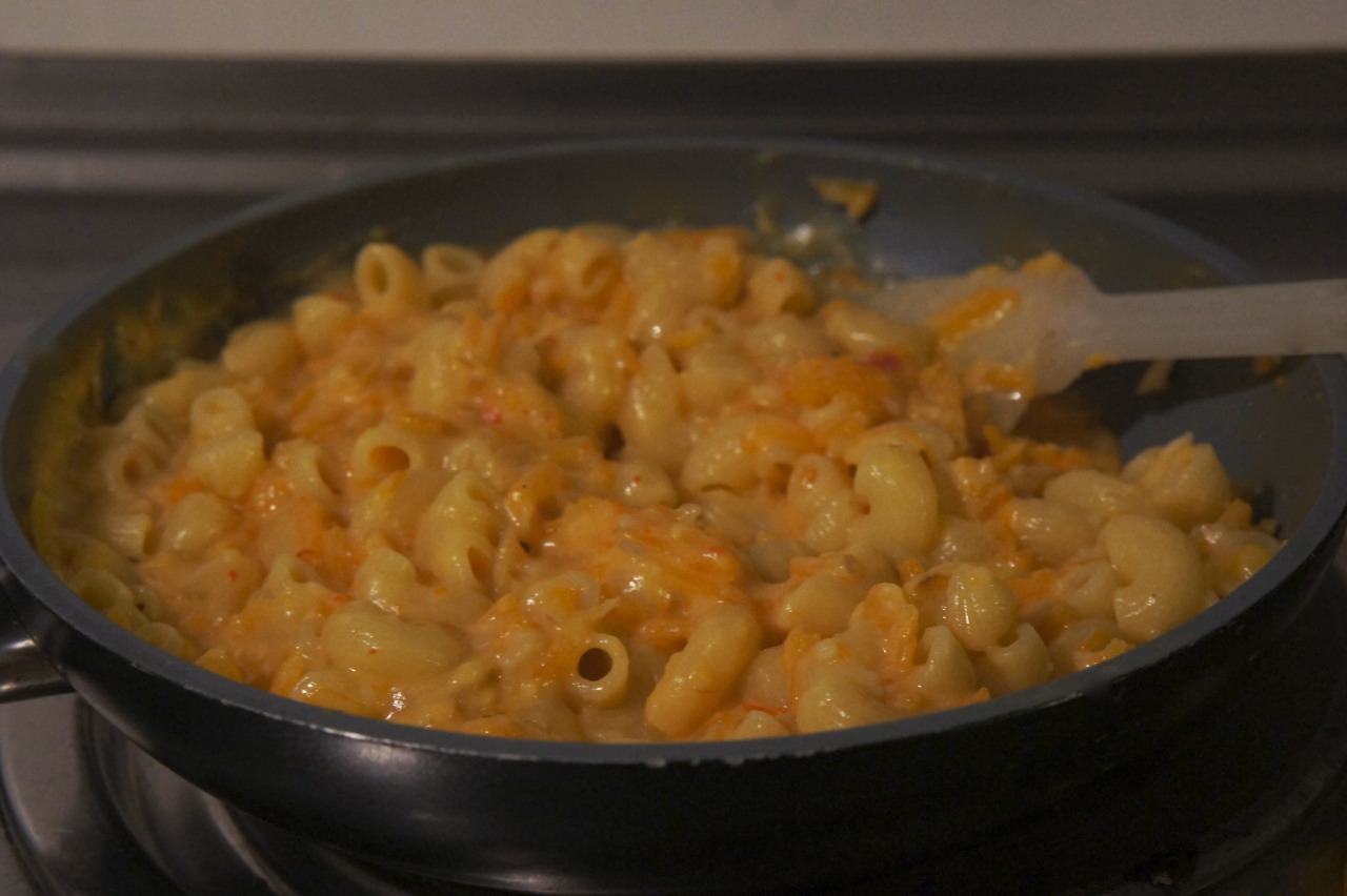 Meanwhile, once the water has come to a boil stir in 200g macaroni pasta along with 400ml grated squash (you can freeze whatever is left over). Cook till pasta is al dente (around 8 minutes). Drain and toss into the béchamel sauce, stirring to coat the pasta well. Serve in pasta bowls along with extra grated parmesan for garnish.