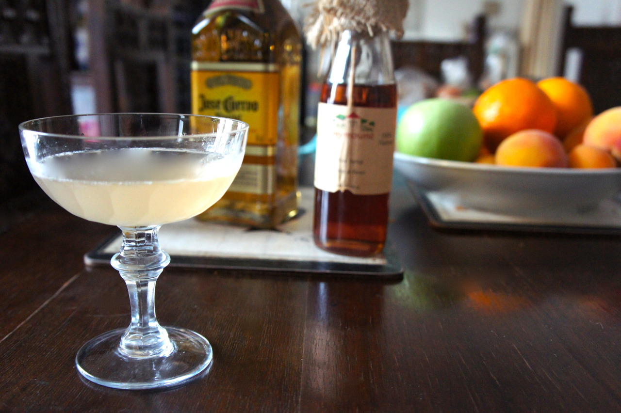 In a cocktail shaker 1/3 filled with ice, pour in 40ml golden tequila, 10ml rose syrup, 10ml Verdello liqueur (made from Sicilian green lemons), and a squeeze of lemon or lime. Shake vigorously. Pour into a chilled cocktail glass.