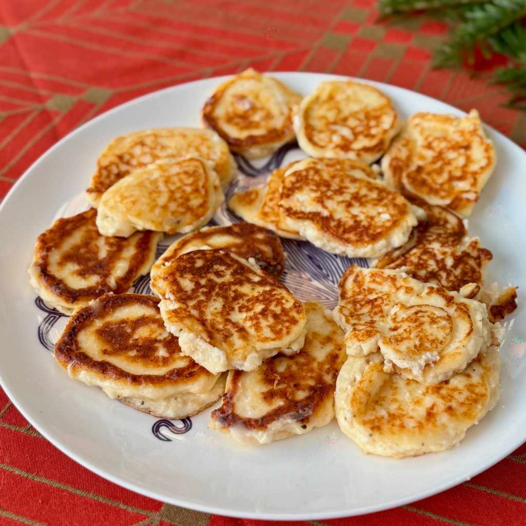 Warm a film of rapeseed oil in a non-stick frying pan and drop heaping tablespoons of the batter into the pan, flipping over when golden (use a silicon spatula to ensure the delicate fritters stay intact).