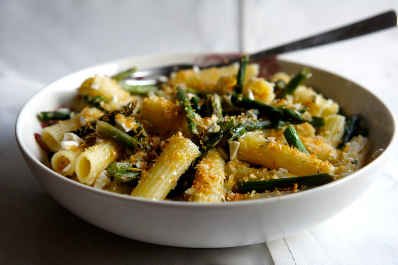 Drain the pasta, setting aside ½ cup of the cooking water. Add the pasta back to the pot, along with the asparagus, the juice of ½ lemon, and a little of the cooking water to moisten. Add 1/3 cup chopped ricotta duro/salata and stir well.
