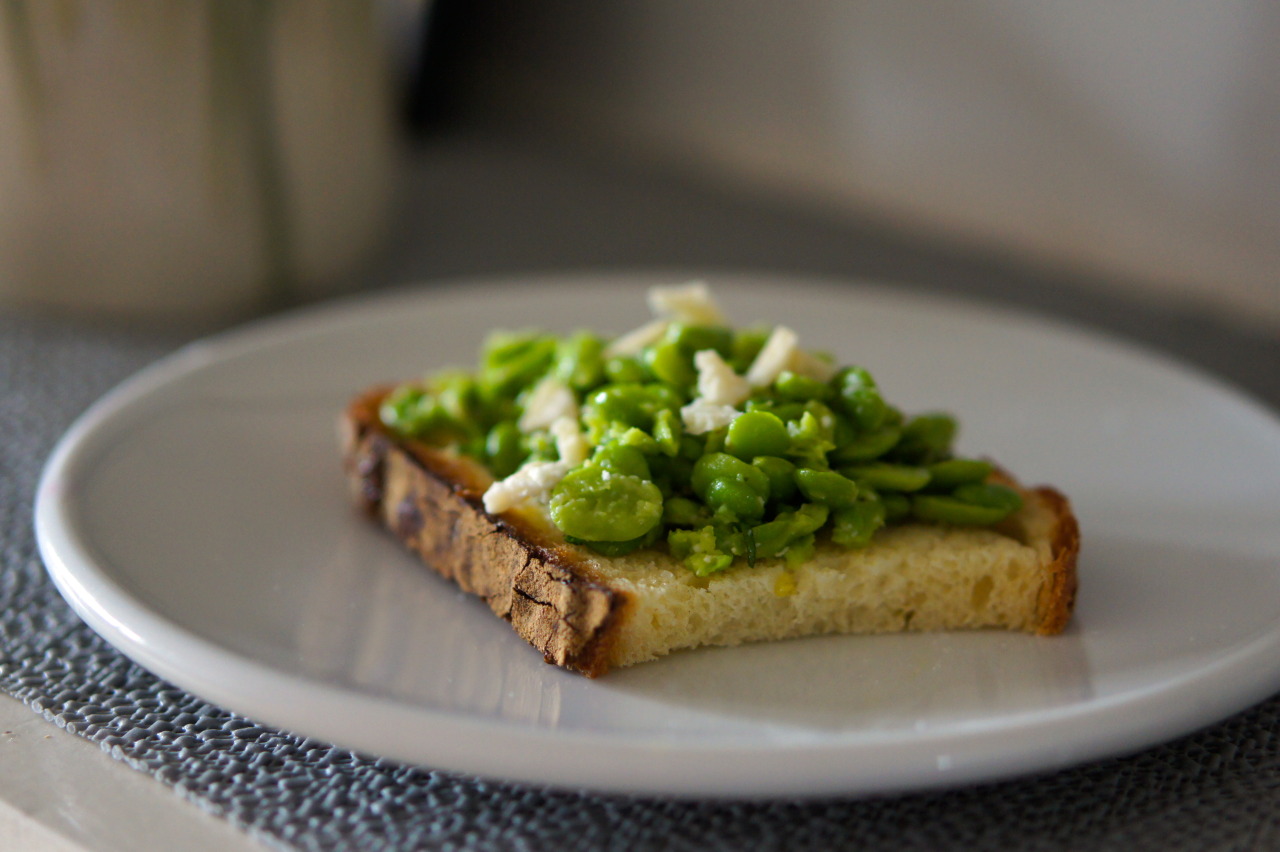 Toast slices of crusty Italian bread, rub with a cut clove of garlic. Pile on the broad beans. Drizzle a little extra olive oil over top and add slivers of parmesan.