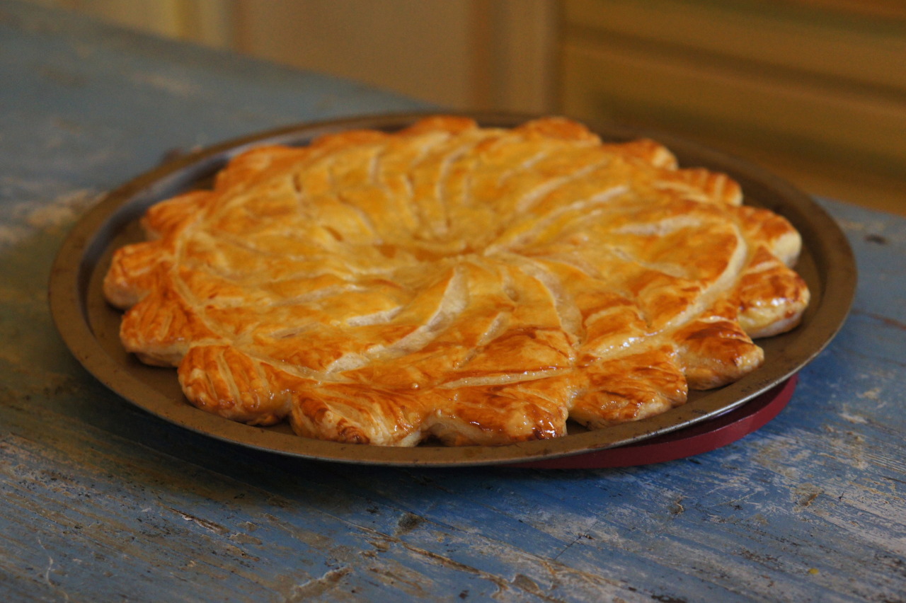 A traditional French dessert made with puff pastry and filled with a rich nut cream.