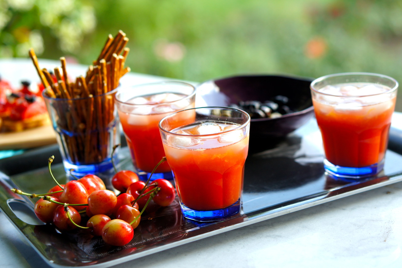 In a jug, mix together 1 part* freshly squeezed orange juice, 1 part pink grapefruit juice, 1 part Campari and a swig of grenadine (or raspberry cordial).
