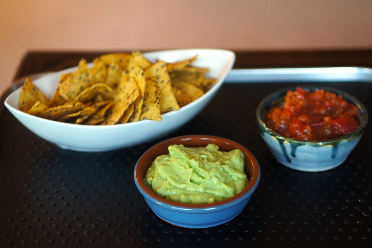 Blend till smooth. Serve with tortilla chips and tomato salsa.