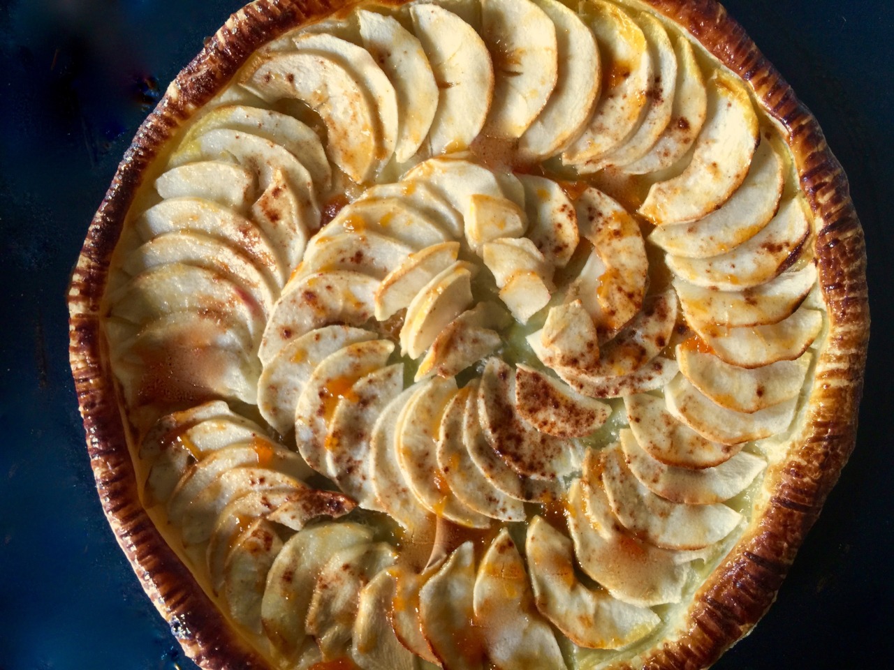 Remove from the oven, and immediately baste the warm apples with more melted apricot jam.