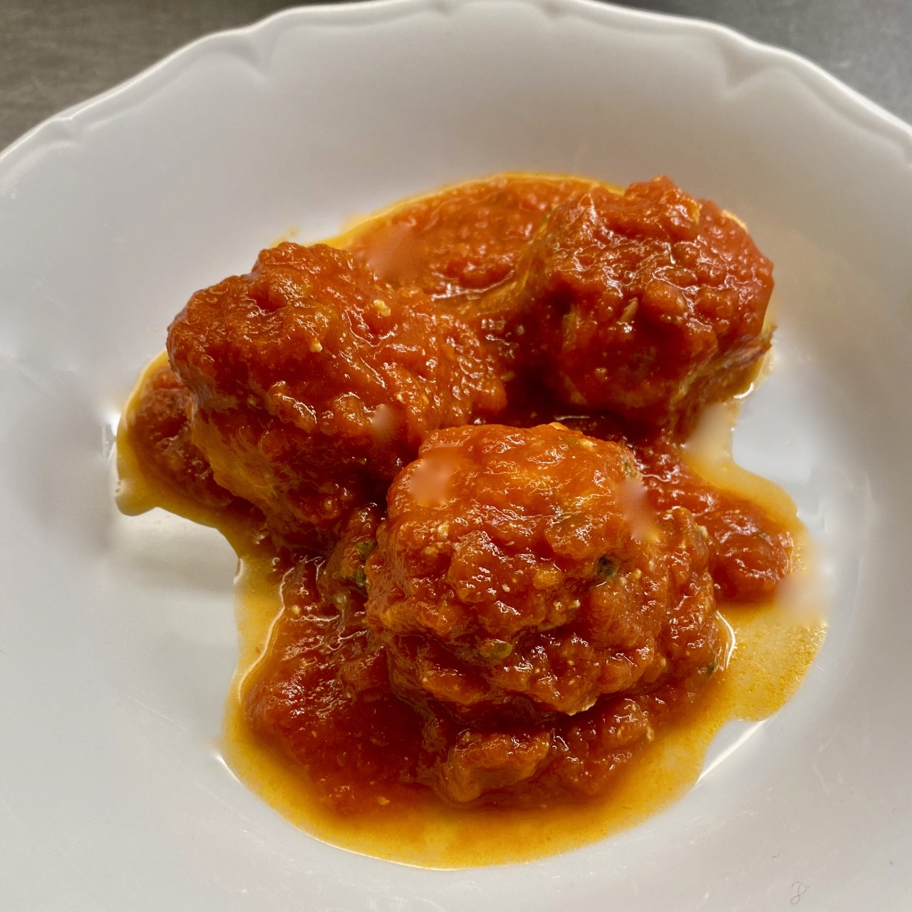 In a medium-sized bowl mix together 250g ricotta cheese, 50g pecorino cheese (grated), 50g breadcrumbs, 1 medium-sized egg, a handful of finely chopped parsley, and freshly ground salt and pepper. Form into small balls (around 16), using a lever cookie scoop if you have one. and place on a baking parchment.