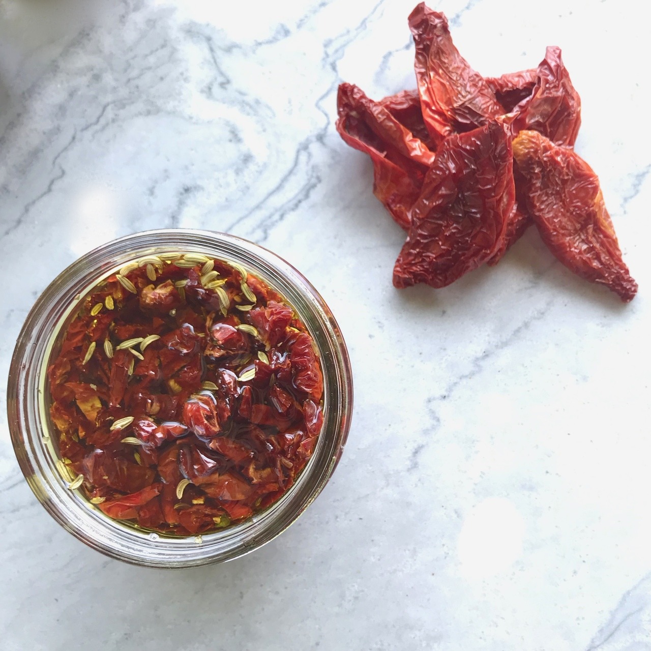 A deep summer recipe.Slice 3kg small to medium-sized Roma tomatoes in two length-wise. Gut them (i.e. remove the seeds) and place on a large baking sheet cut side up. Sprinkle with sea salt and place in a hot, dry sun (if windy, so much the better).
