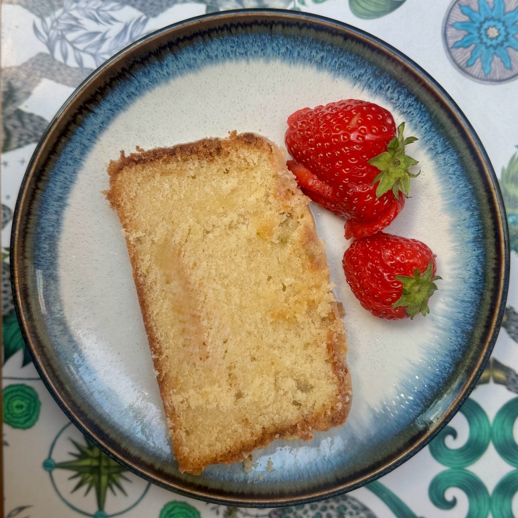 Beat together 175g unsalted butter (at room temperature) with 175g sugar until light and fluffy (using a stand mixer or equivalent). Add 3 eggs one at a time, until well-incorporated. Mix in the zest of 1 lime, 90g Greek yoghurt, and 75g passion fruit curd.